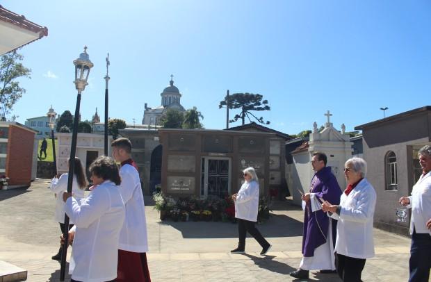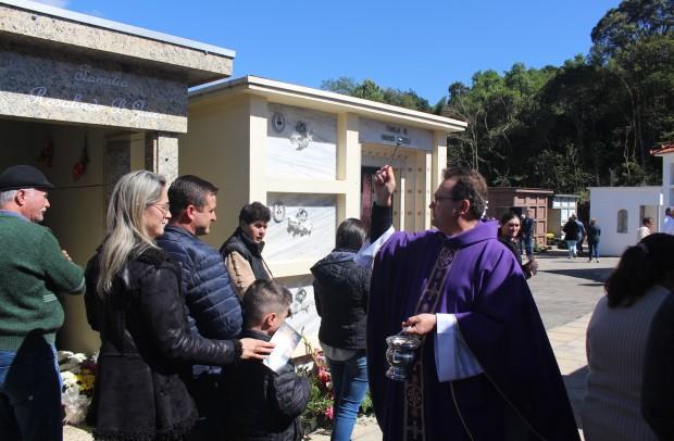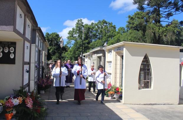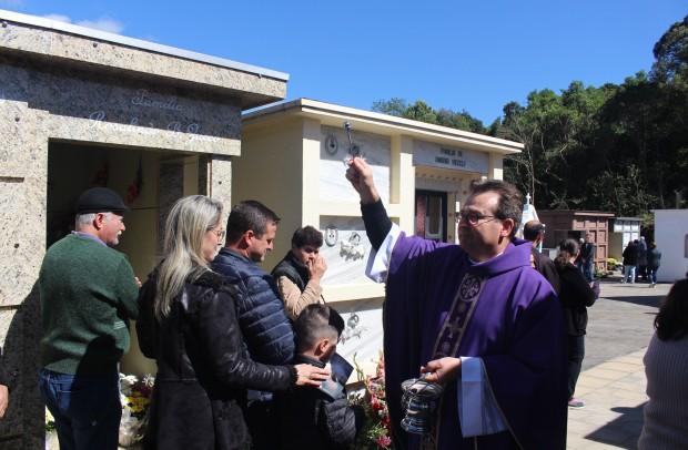 Na manhã deste 02 de novembro, na celebração das 8 horas, o Santuário de Caravaggio acolheu a muitos devotos que vieram rezar pelos seus entes queridos, neste dia em que a Igreja celebra os Fiéis Defuntos. Padre Ricardo Fontana reitor deste santuário presidiu a assembleia litúrgica assim como a oração junto ao cemitério da comunidade.
