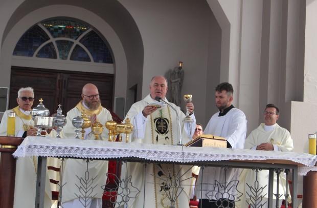 Ponto alto foi a Missa campal, presidida pelo bispo diocesano de Caxias do Sul, Dom José Gislon, com a esplanada do Santuário lotada de fiéis