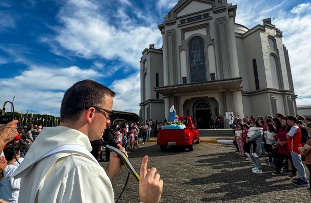 Por isso, em 2025, em espírito de ação de graças e de reconstrução, nos unimos no Santuário de Nossa Senhora de Caravaggio para renovar nossa fé, fortalecer nossa esperança, reanimar nossas famílias e seguir em frente na peregrinação da vida, certos de que, com a Mãe ao nosso lado, teremos sempre forças para continuar."
