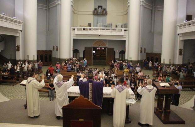 Em uma celebração muito orante, presidida pelo Reitor do Santuário, padre Ricardo Fontana e concelebrada pelo bispo emérito Dom Alessandro Ruffinoni e os sacerdotes, Alcindo Trubian, Jocimar Romio e Renan Dall'Agnol. Padre Ricardo em um tom de grande acolhida com a catequese, refletiu sobre a vivência da Quaresma, adequando para suas realidades e as verdades deste tempo. Disse o Reitor: "É necessário neste tempo de vivência quaresmal, que possamos ficar um pouco off-line das tecnologias, para ficarmos mais on-line com Deus. Galerinha, fiquem atentos, pois vem um ano bacana! "Se dirigindo aos Catequistas afirmou: "Catequistas parabéns e gratidão desde já, pois vocês estão fazendo o papel mais importante que é educar, como nos faz refletir a Campanha da Fraternidade deste ano: "Fala com sabedoria, ensina com amor".