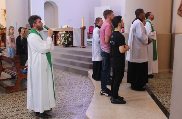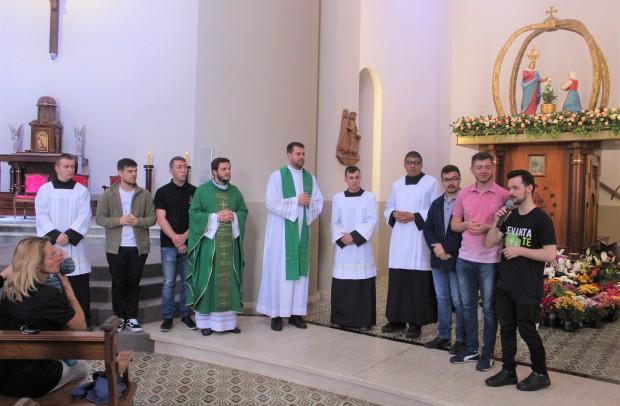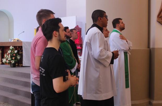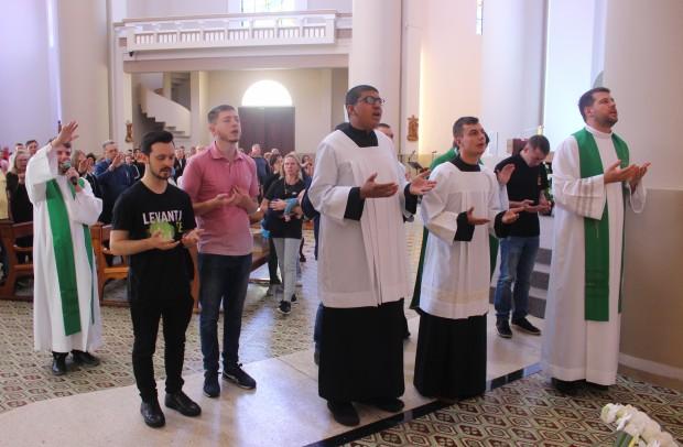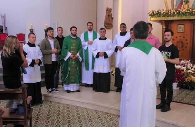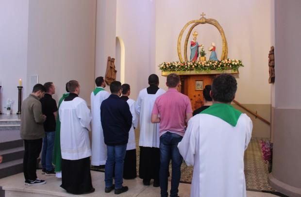 A primeira ação do dia foi a Missa, no altar do Santuário Diocesano de Nossa Senhora de Caravaggio, em Farroupilha. A celebração foi presidida pelo formador do Curso Propedêutico, padre Gustavo Predebon, e concelebrada pelo reitor do Seminário São José, padre Marciano Guerra, e pelo padre Jocimar Romio, da equipe sacerdotal do Santuário. Ao final da Eucaristia, a comunidade pôde conhecer os seminaristas e rezar pelas vocações. O reitor do Santuário, padre Ricardo Fontana, acolheu os seminaristas e suas famílias.
