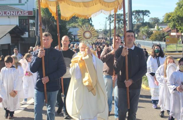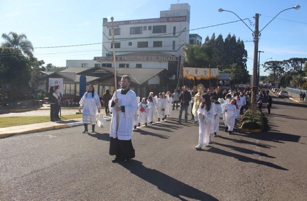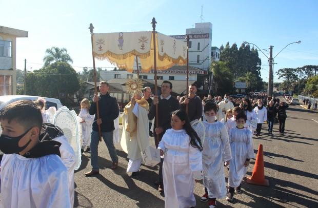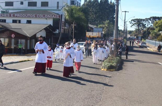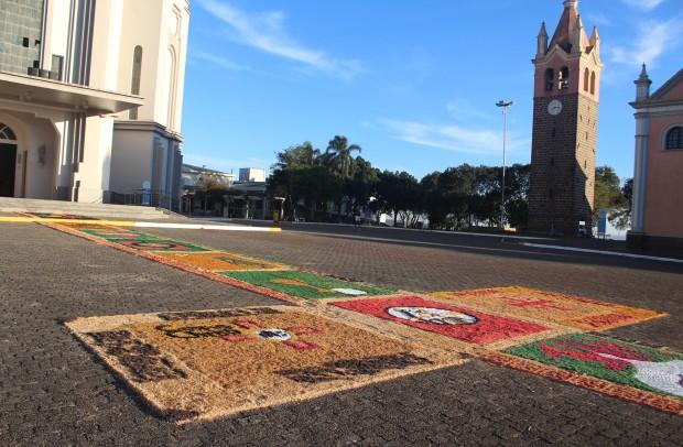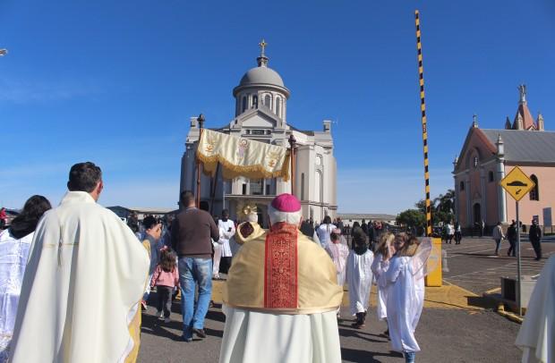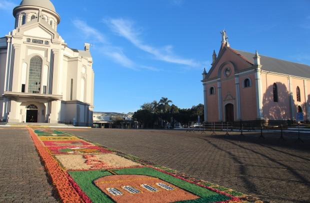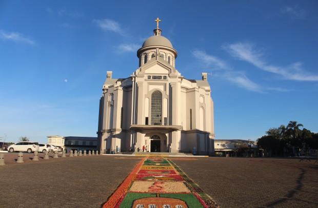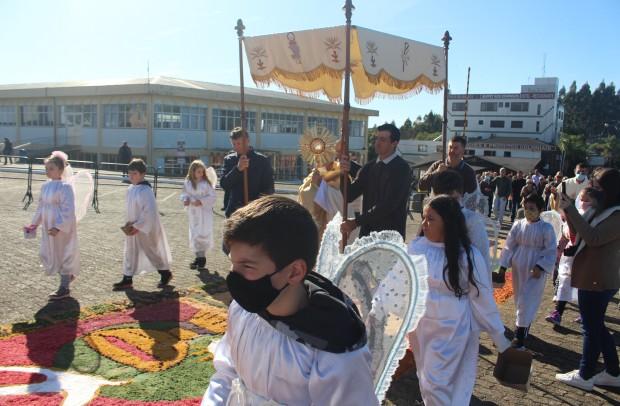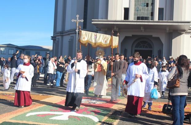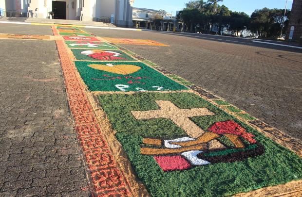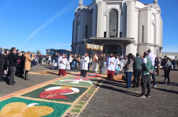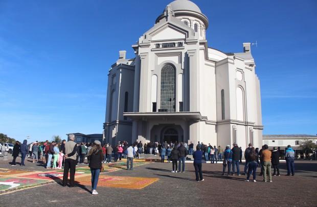 A Festa de Corpus Christi, celebrada nesta quinta-feira (16), contou com procissão pelos tapetes de serragem confeccionados no Santuário de Nossa Senhora de Caravaggio. Com um grande número de fiéis a celebração da Festa do Corpo de Cristo iniciou no Santuário de Caravaggio, ainda na noite da quarta-feira, quando mais de 100 pessoas das comunidades da Paróquia de Nossa Senhora de Caravaggio, se reuniram para a confecção dos tapetes.