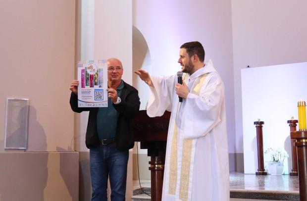 Ao chegarem diante da imagem de Nossa Senhora, padre Ricardo fez uma breve explicação sobre o Santuário de Caravaggio ser o coração da Diocese de Caxias do Sul, a história da aparição de Maria à camponesa Joaneta em 1432 e, também, sobre o Ano Santo. Logo depois, ele presidiu a Missa da memória litúrgica de Santa Teresa D'Ávila, padroeira dos professores. A celebração também teve a presença do assessor diocesano do Setor Juventude, padre Gustavo Predebon, que fez o convite para o Bote Fé, que será o encontro da juventude católica do Rio Grande do Sul no dia 15 de novembro, em Caxias do Sul.