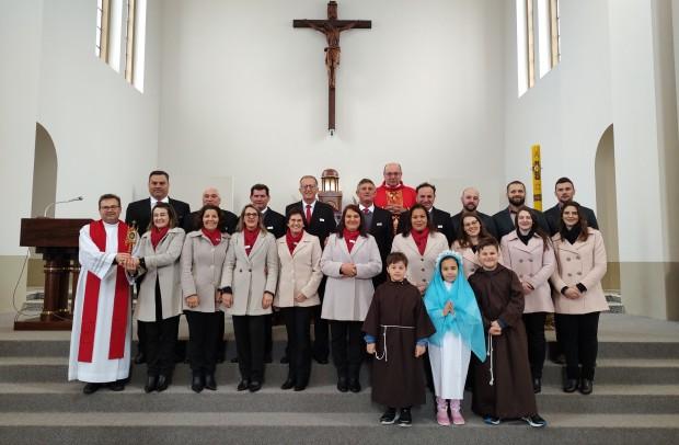 A Missa, no Santuário de Caravaggio, foi presidida pelo pároco da Paróquia Santo Antônio, padre Volmir Comparin, e concelebrada pelo reitor do Santuário, padre Ricardo Fontana.